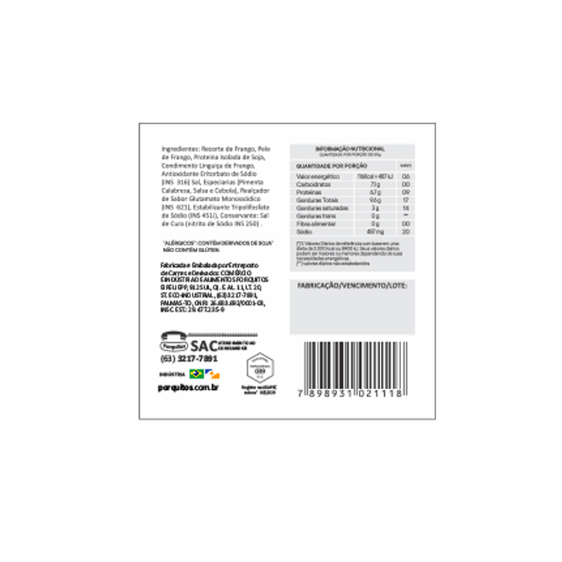 Linguiça de Frango – Recheada com Bacon – Linha Gourmet